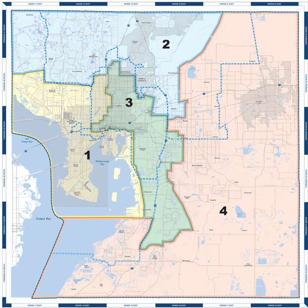 Hillsborough County Commission District Map – Hillsborough County commissioners face a host of challenges in the coming years, from managing growth and improving transportation to preserving the region’s quality of life. Commissioners are . COBB COUNTY, Ga. – It appears a long-running battle over district maps in Cobb County is over. Cobb County Commissioners decided to drop their fight over state versus county-drawn district maps. .