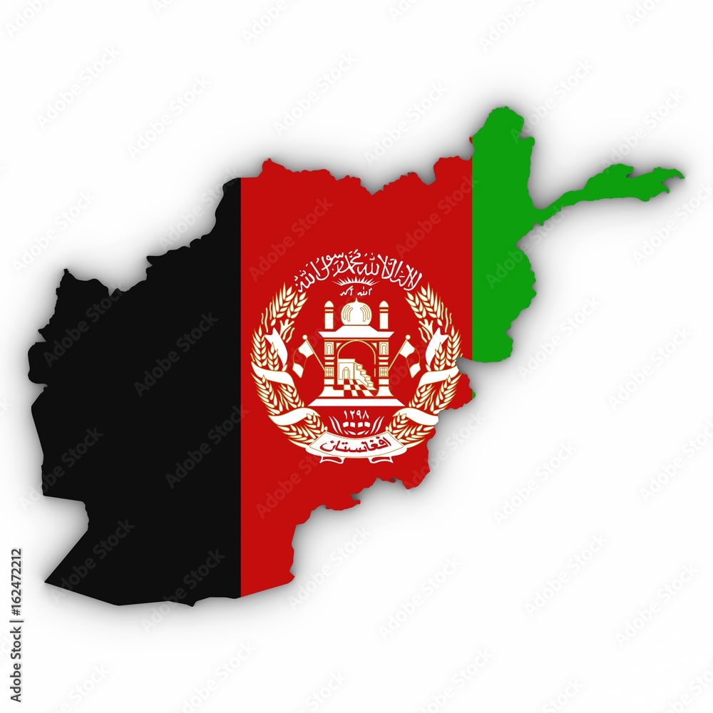 Afghanistan Map Outline with Afghan Flag on White with Shadows 3D
